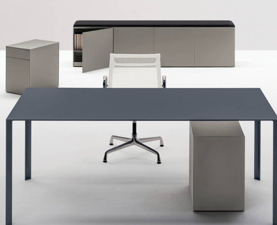 LESS LESS est une série de tables en aluminium . Remarquables par le profilé en "L" des 4 pieds , avec des bords de 45mm et 8mm d'épaisseur .Le profil extérieur de la table est très fin qui lui donne un aspect très léger , très épuré .