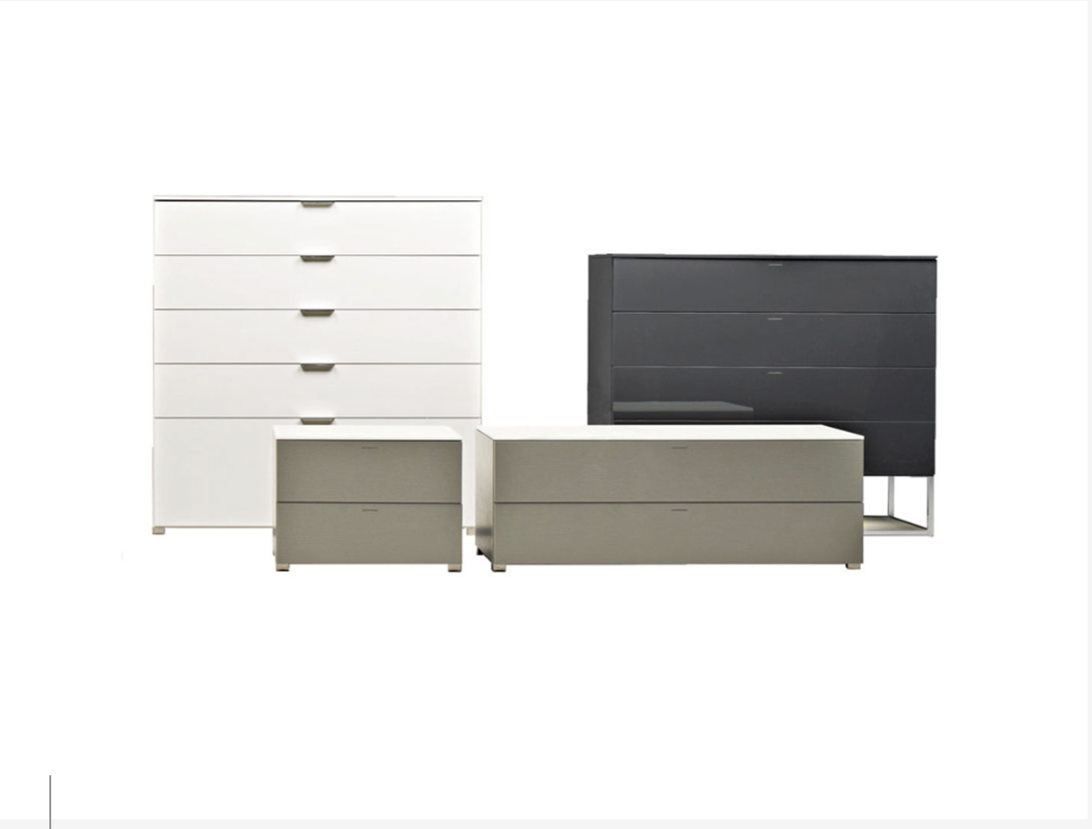 909 est un système flexible de meubles à tiroirs avec ouverture à pression ou avec poignée , complété éventuellement par un élément ouvert .909 est disponible dans des finitions de laque mate ou brillante .