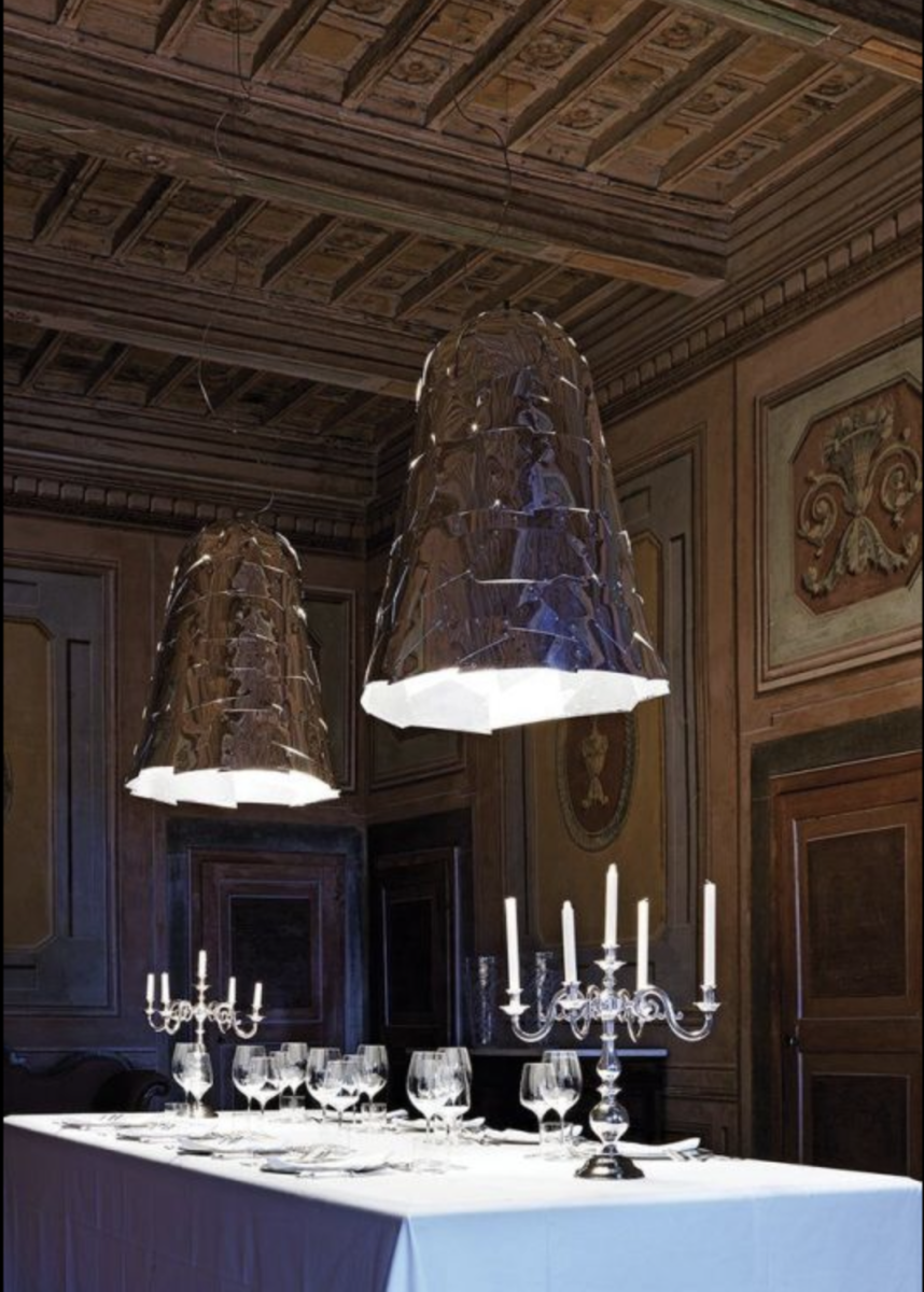 Ce sont des plaques en aluminium qui sont rivetées sur cette suspension , et la lumière est directionnelle donc parfaite pour éclairer un dîner .