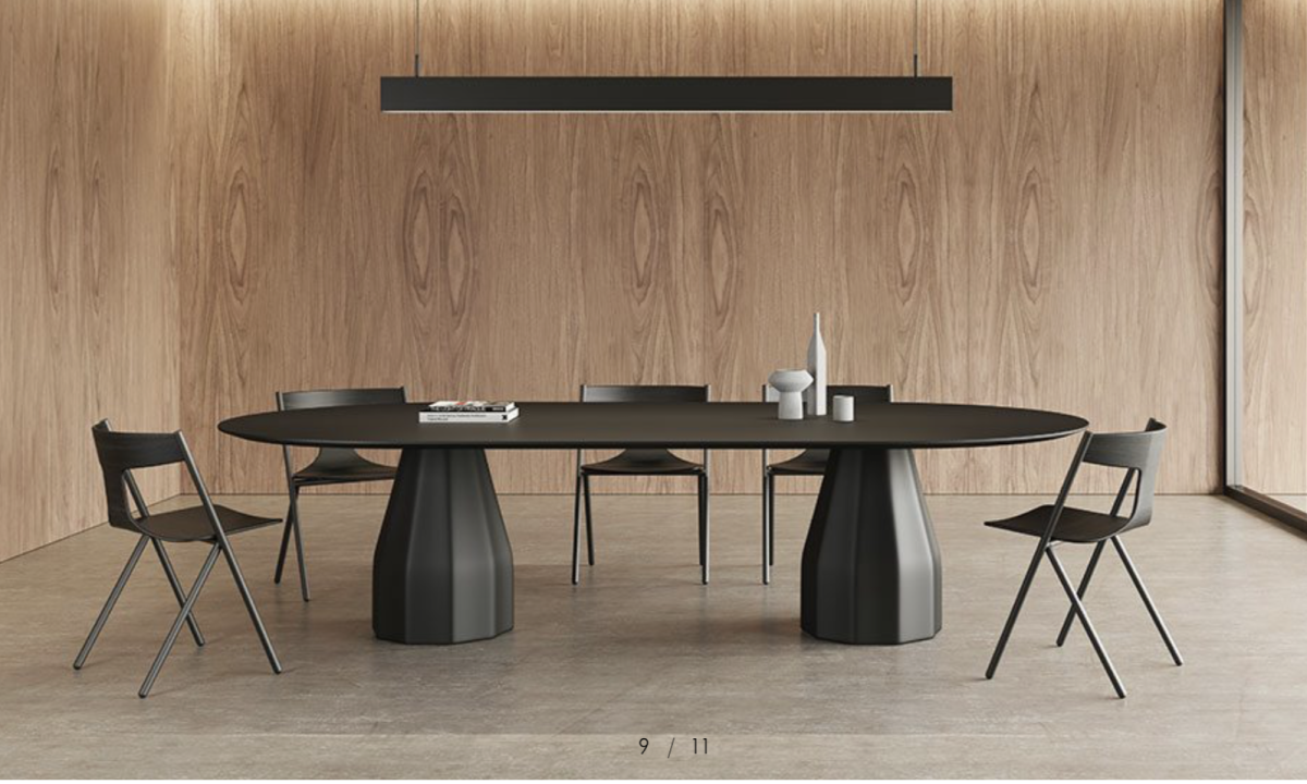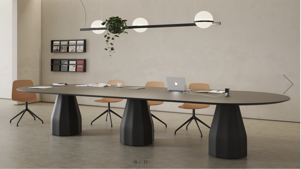 Burin est une table design conçue tout aussi bien pour la maison , le bureau , l'extérieur . En fonction de chaque espace , vous allez pouvoir combiner base , plateau et hauteur .De la table repas intérieure ou extérieure , à la table bureau , voire table de conférence , tout est possible